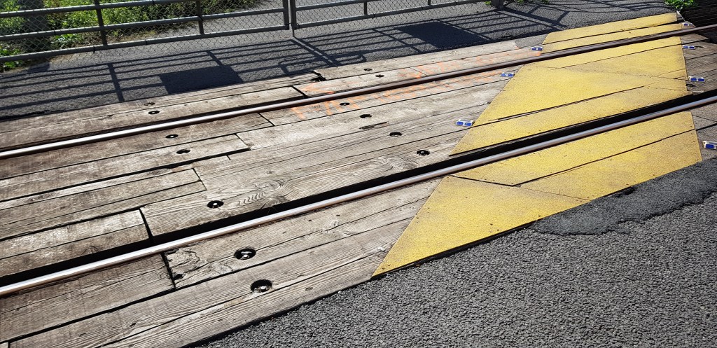 This news thrills me. I’ve always loved crossing railway racks, or tram tracks, or any kind of track. I love the sound car tyres make as they cross them, the deep-set drum flourish and squeaking rubber purchase as the air filled tubes strike the rails. [This is an ancient love in me, rustled up from years of driving across the Continent where rail crossings seemed so much more plentiful and open.]