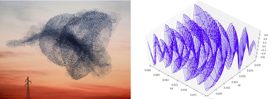 For example if there was a social campaign that could be plotted not only by number of participants (flock) but by intensity (altitude) geolocation (topography) and time (horizon) – perhaps we could create animated murmurations of social phenomena.